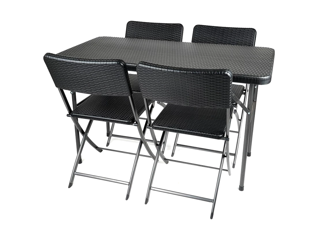 The 4 matching rattan-look folding seats look great and fold away for easy storage.