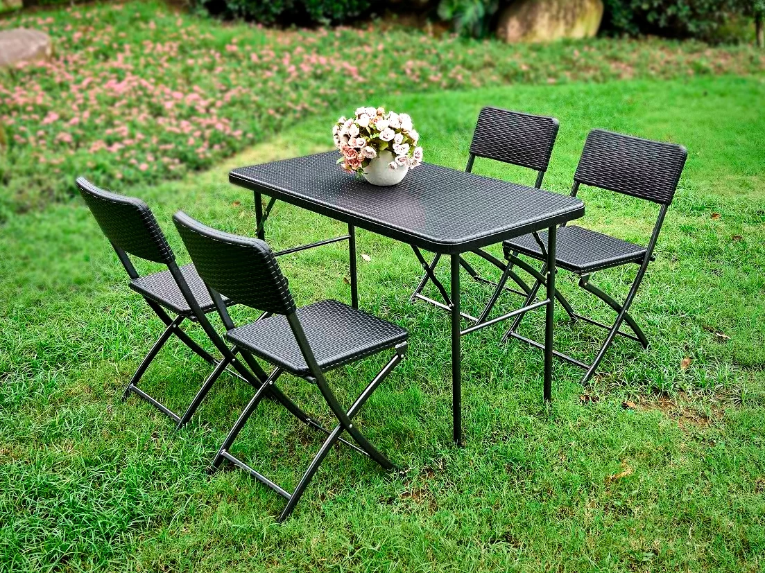 Its practical size and stylish look make this 4-seater rattan look table a top choice for your backyard, deck, at the bach or in your apartment, camping and caravanning holidays, picnics and barbecues or anywhere you need a strong, stylish portable dining set.