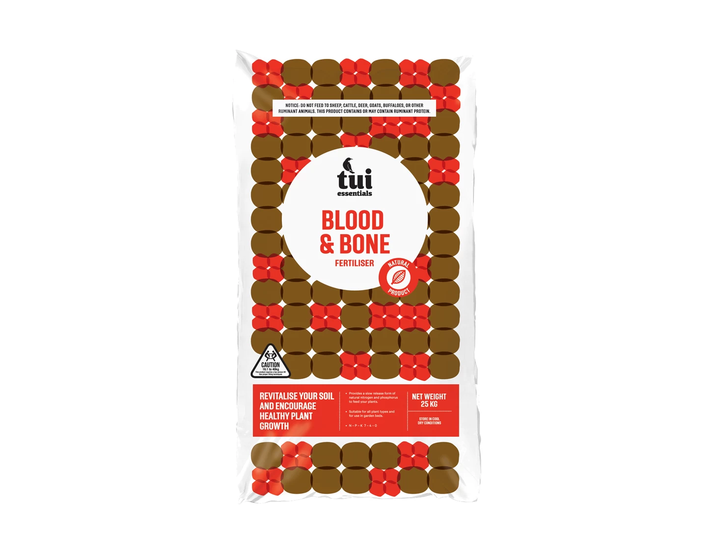 The addition of Tui Blood & Bone to your garden provides a natural source of nitrogen for healthy plant growth, and phosphorus for strong root development.