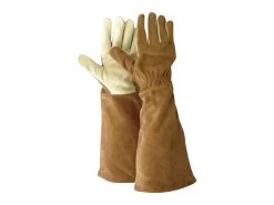 This premium leather pruning glove provides excellent hand and lower arm protection against prickles and thorns. The supple suede sleeve provides the wearer with exceptional comfort without compromising the robustness of the natural leather palm of the glove.