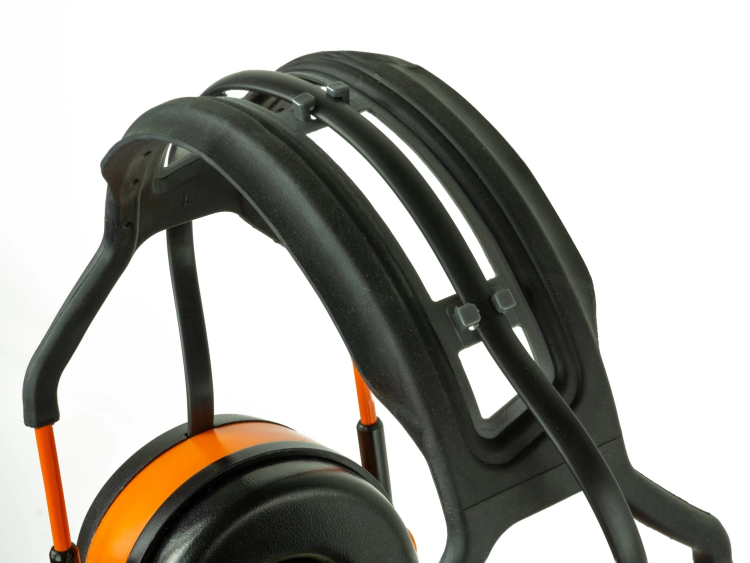 The rechargeable lithium-ion battery gives you a full day of performance, while the ergonomic foam cushioning and adjustable low pressure headband keeps things comfortable. It’s also hat compatible so you can stay sun safe as you work.