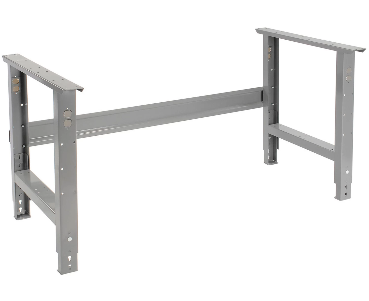 Benches are made with steel channel construction for long-lasting durability. Our height adjustable work benches allow for customizable comfort, adjustable from 77.4cm to 87.4cm. The front and back legs feature knockout sockets for an electrical outlet. Easily screwing in to place with no wiring necessary. Legs are finished with scratch resistant grey baked enamel.