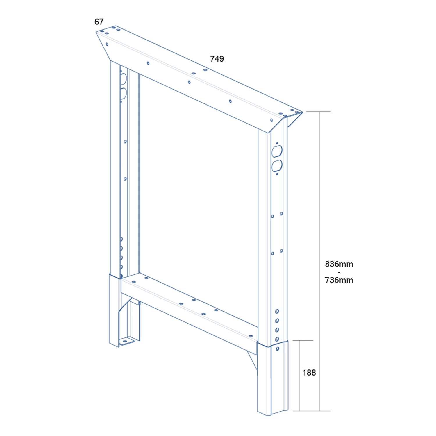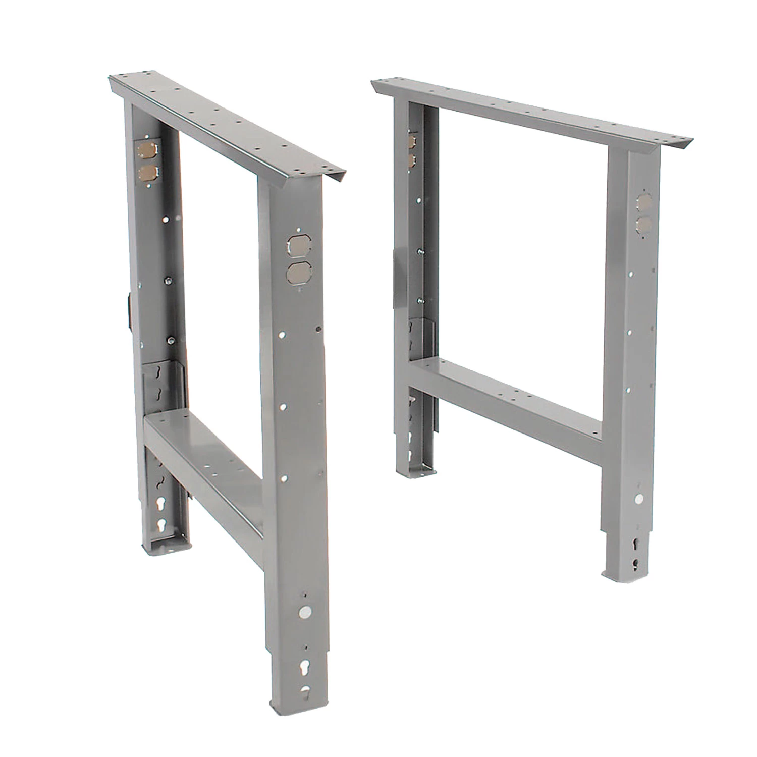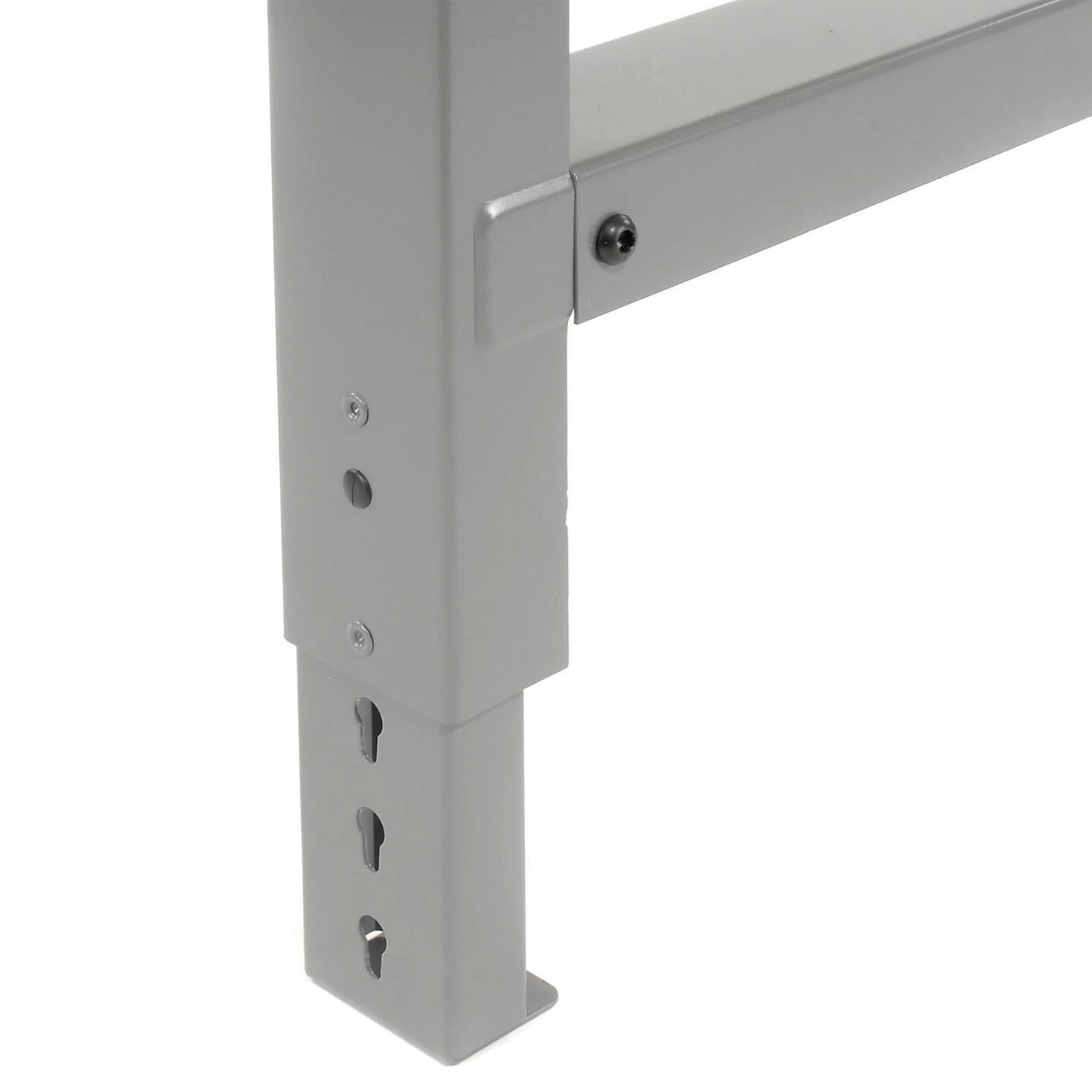 Made with steel channel construction for long-lasting durability. You can adjust the height from 74 to 84cm. The front and back legs feature knockout sockets for an electrical outlet. Easily screwing in to place with no wiring necessary. Legs are finished with scratch resistant grey baked enamel.