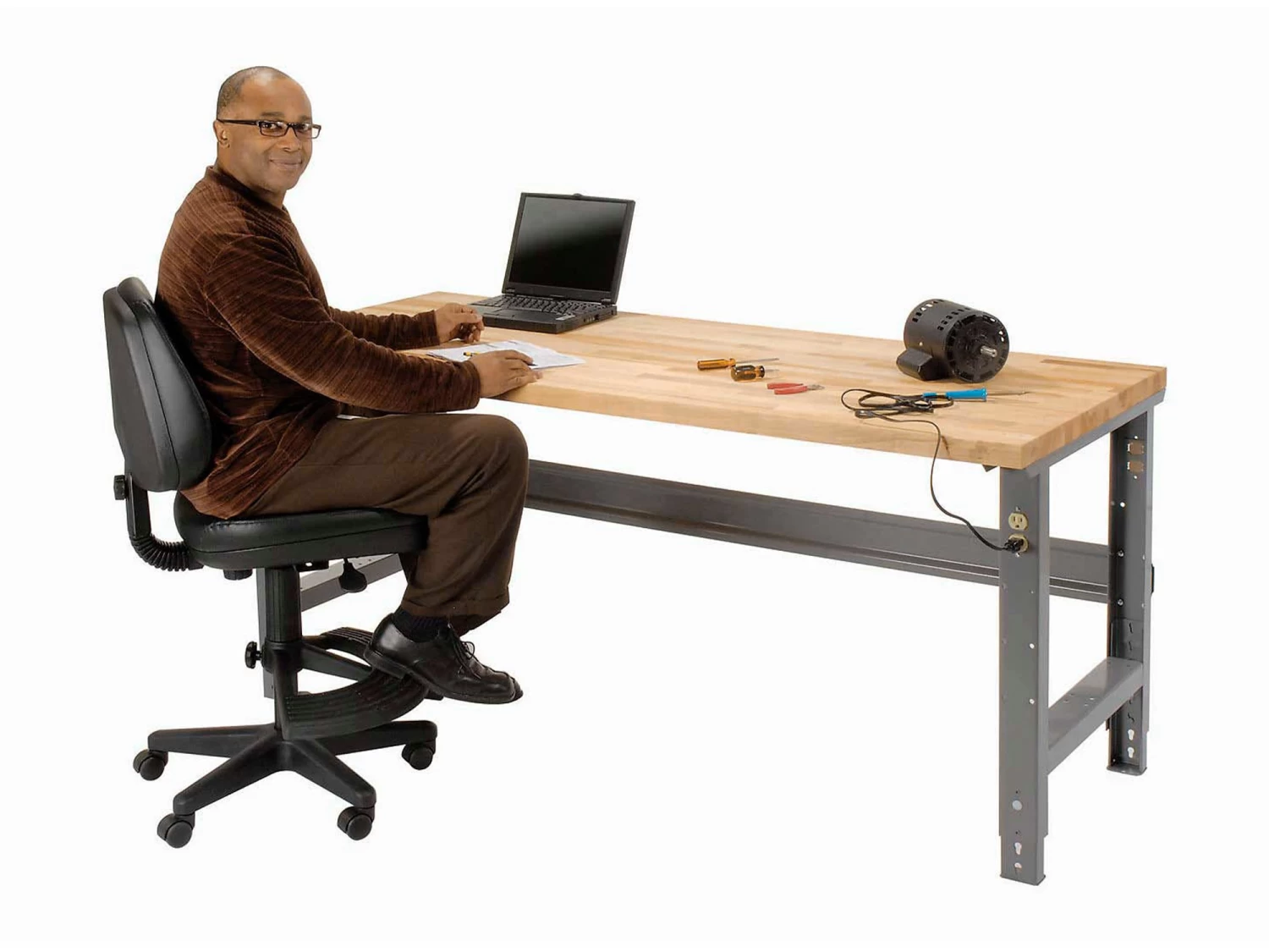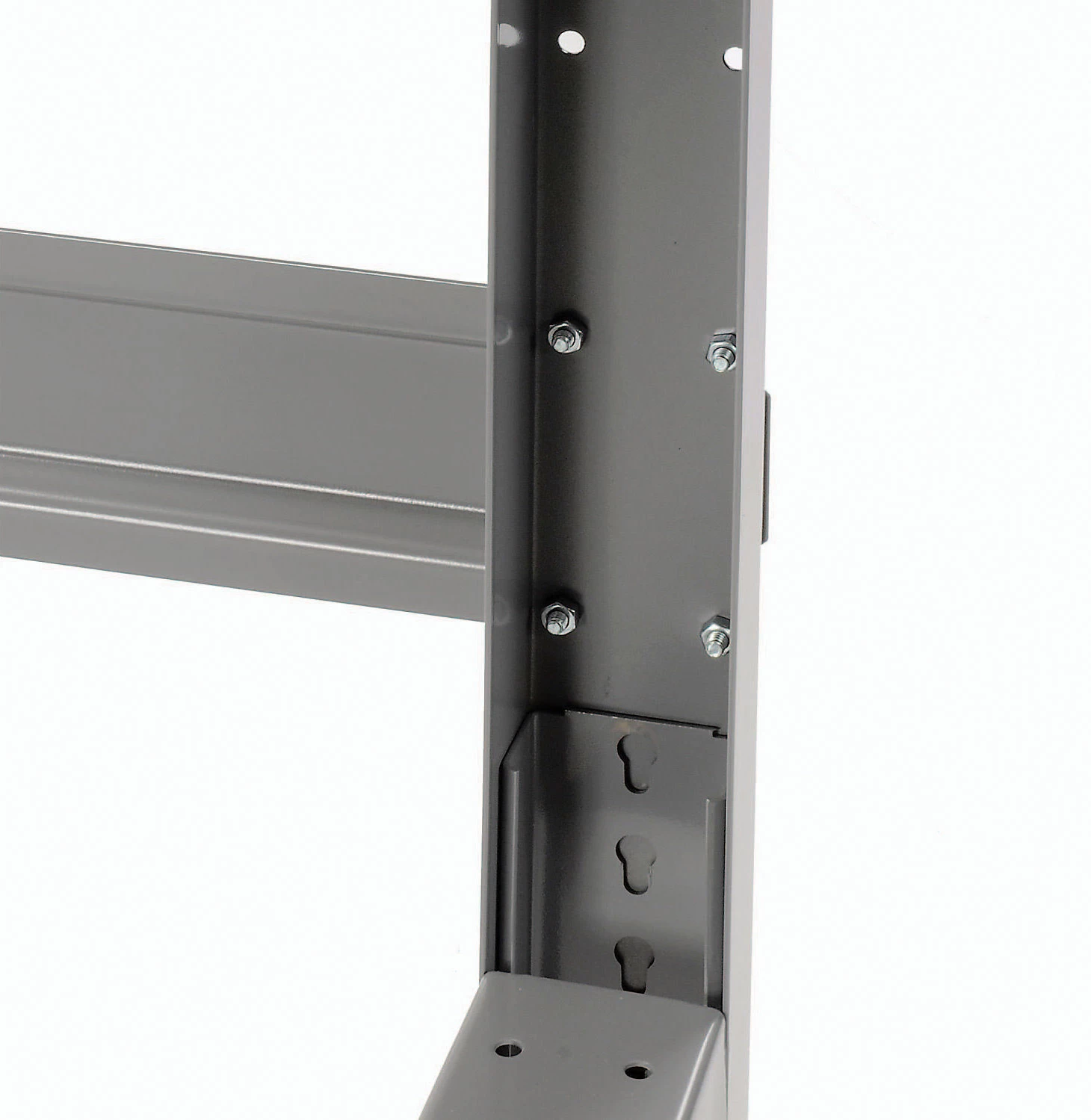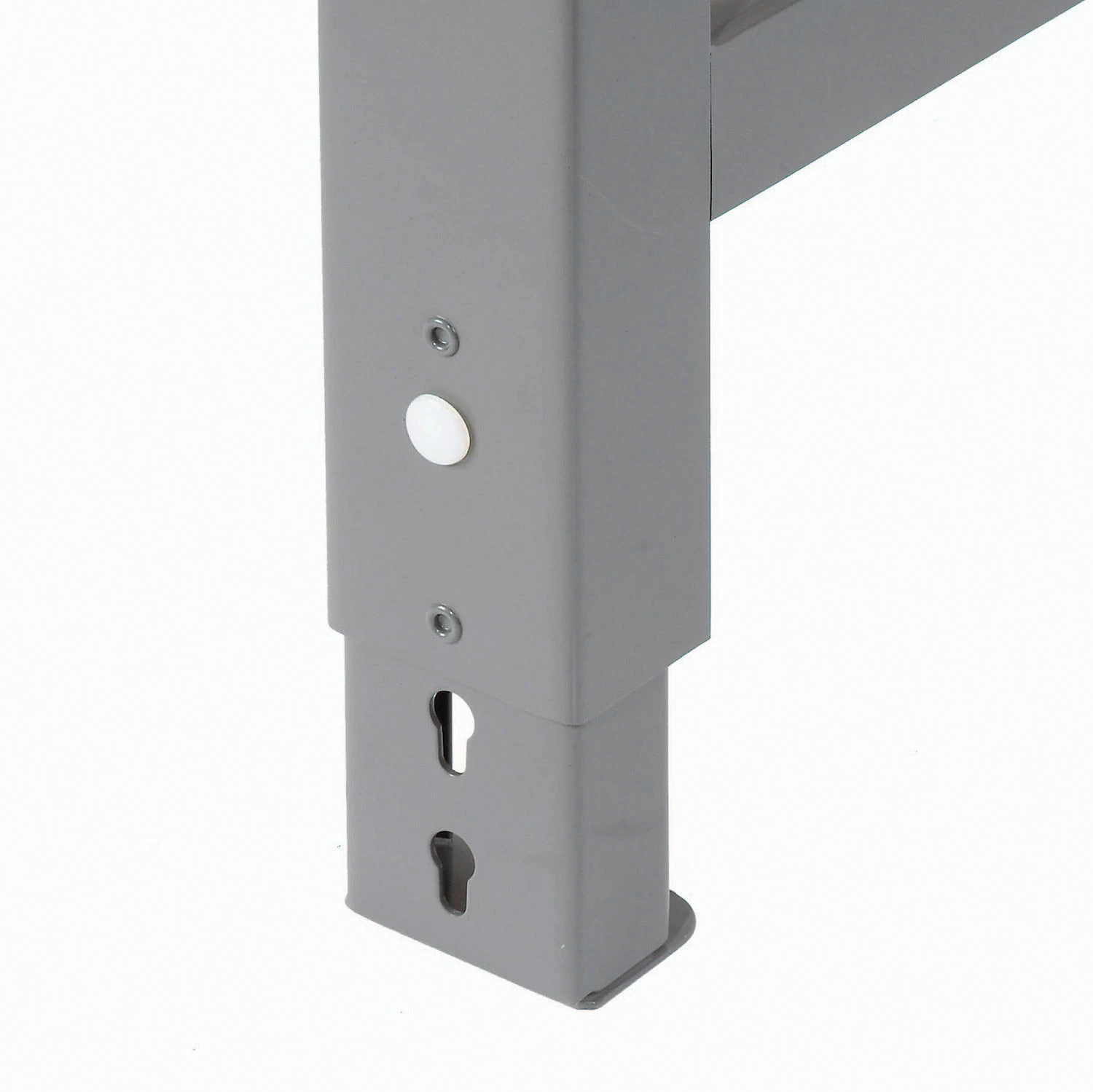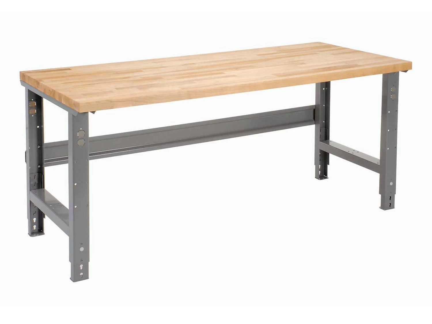Benches are made with steel channel construction for long-lasting durability. You can adjust the height from 74 to 84cm. The front and back legs feature knockout sockets for an electrical outlet. Easily screwing in to place with no wiring necessary. Legs are finished with scratch resistant grey baked enamel.
