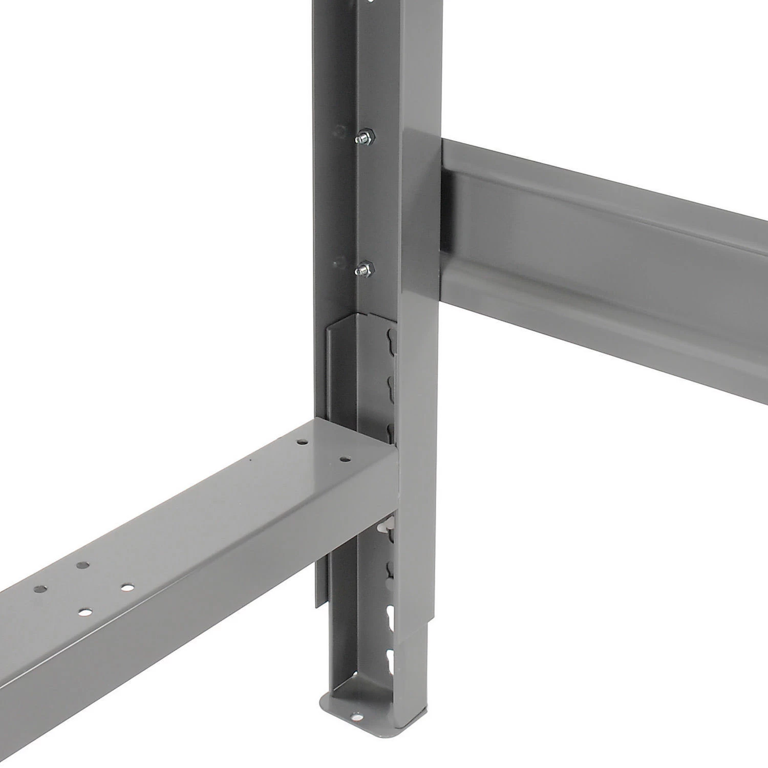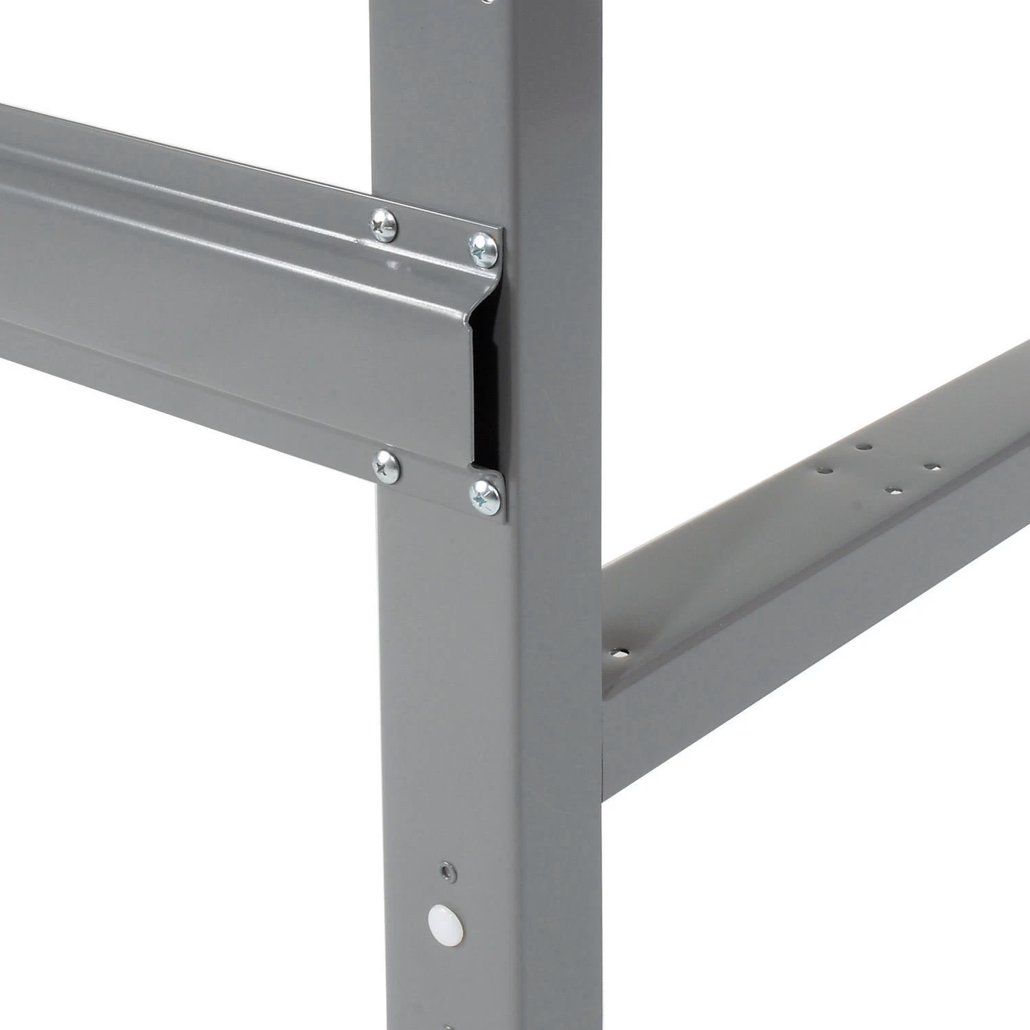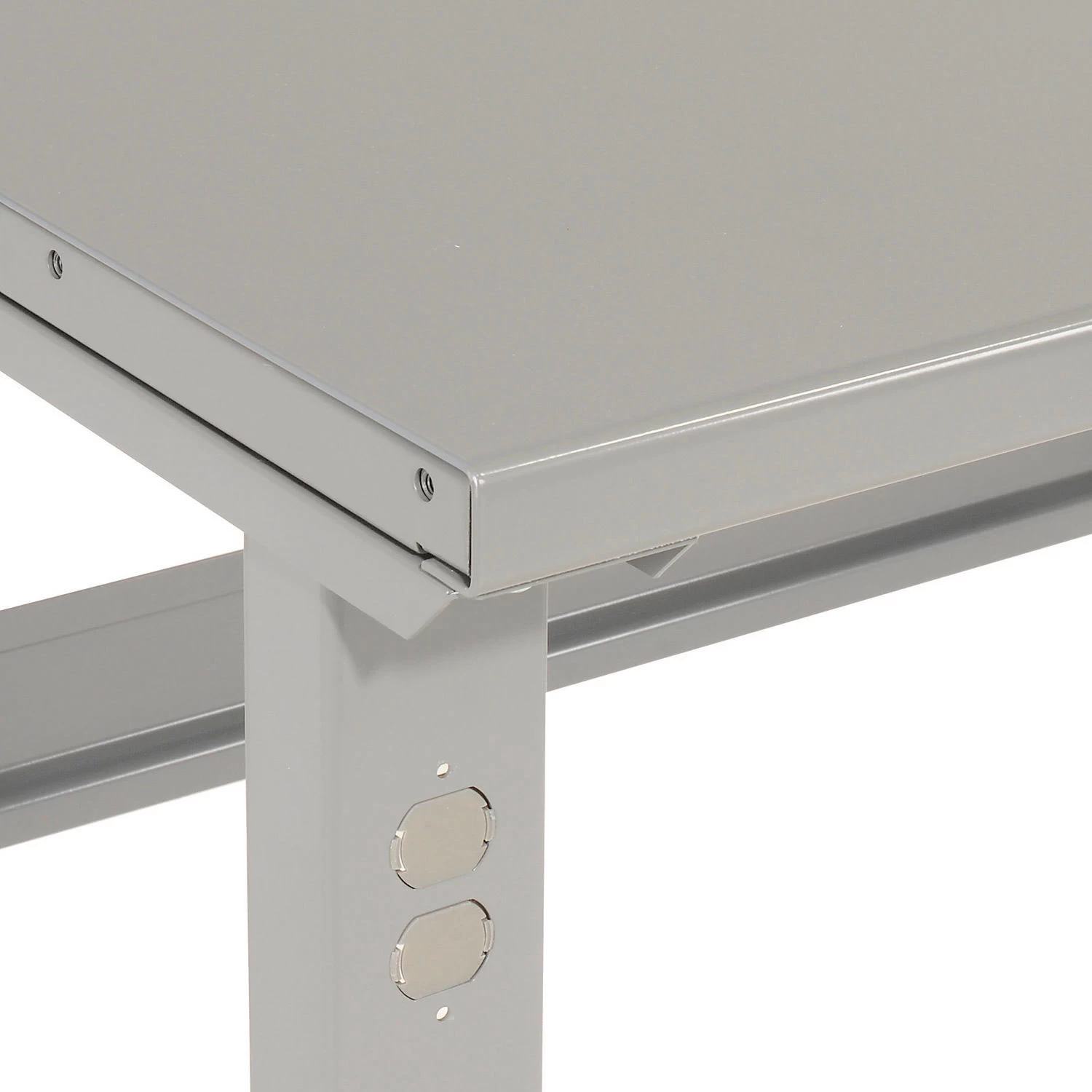 A tradesman’s dream bench. This solid, rugged top will stand up against the toughest conditions. The top is 12 gauge steel reinforced with 14 gauge end channels for superior strength and durability. Gray powder coat finish will not absorb oil and resists rust and cracks.